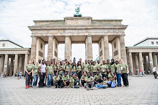 Gezielt und sensibel suchte sie mit den Jugendlichen das Gespräch zu sozialem Unternehmertum und gesellschaftlicher Verantwortung. Die dritte Schüler-Gruppe stellte Ecosia Geschäftsideen für solarbetriebene Frühstücksautomaten vor und berichtete von einem Prototypenmodell zur Energierückgewinnung. Im Anschluss an das Networking ging es mit einer landeskundlichen Stadtrally auf Erkundungstour, bevor sich alle für einen Flashmob am Brandenburger Tor trafen und damit bereits die Abschiedsparty einläuteten.